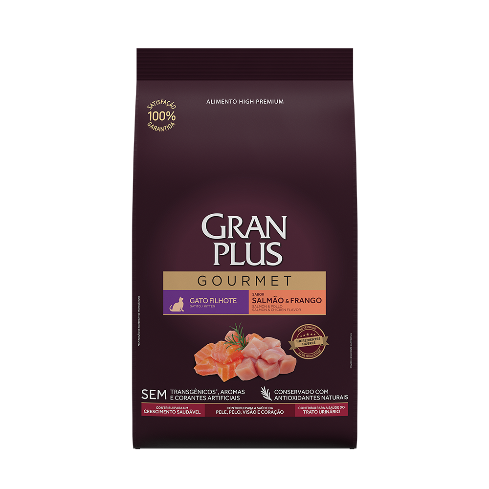 GranPlus Gourmet ofrece opciones sabrosas con proteínas diversas, ingredientes nobles y sin colorantes ni sabores artificiales. Nuestras opciones incluyen alimentos, sobres y patés, con versiones específicas para gatos esterilizados, ayudando a controlar las bolas de pelo y mantener la salud del tracto urinario.